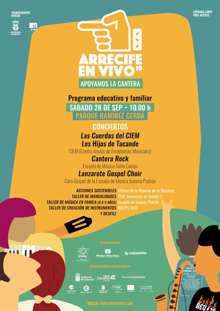 Arrecife en Vivo estrena el programa educativo y familiar ‘Apoyamos la Cantera’, dedicado a los pequeños de la casa y complementario a las cuatro rutas de conciertos. Será el próximo sábado 28 de septiembre, a partir de las 10:00, el céntrico Parque Ramírez Cerdá de Arrecife.