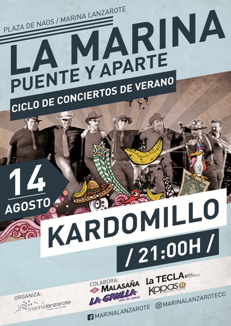 La noche del miércoles, 14 de agosto (víspera de festivo), tendrá lugar una cita musical repleta de diversión con la actuación de la banda conejera Kardomillo en Marina Lanzarote. La Plaza de Naos volverá a acoger una jornada de música en directo pensada para compartir con toda la familia. Será a partir de las 21:00 horas con entrada libre.