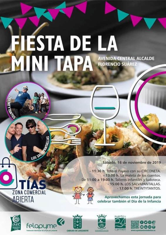 La IX edición de la Semana de la Mini tapa de Tías se celebrará del 11 al 16 de noviembre en la zona comercial abierta del pueblo y cerrará con los conciertos de Los Salvapantallas y TreintYtantos. Las actuaciones musicales al igual que los espectácules infantiles tendrán lugar en la Avenida Central de Tías.