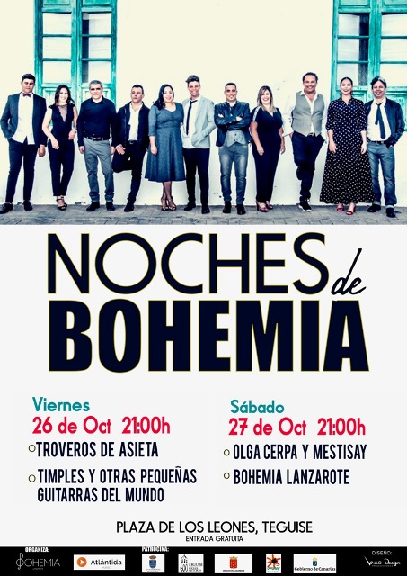 El viernes 26 y el sábado 27 de octubre, a partir de las 21.00 horas, en la Carpa de La Villa de Teguise se celebrará la primera edición de Noches de Bohemia.